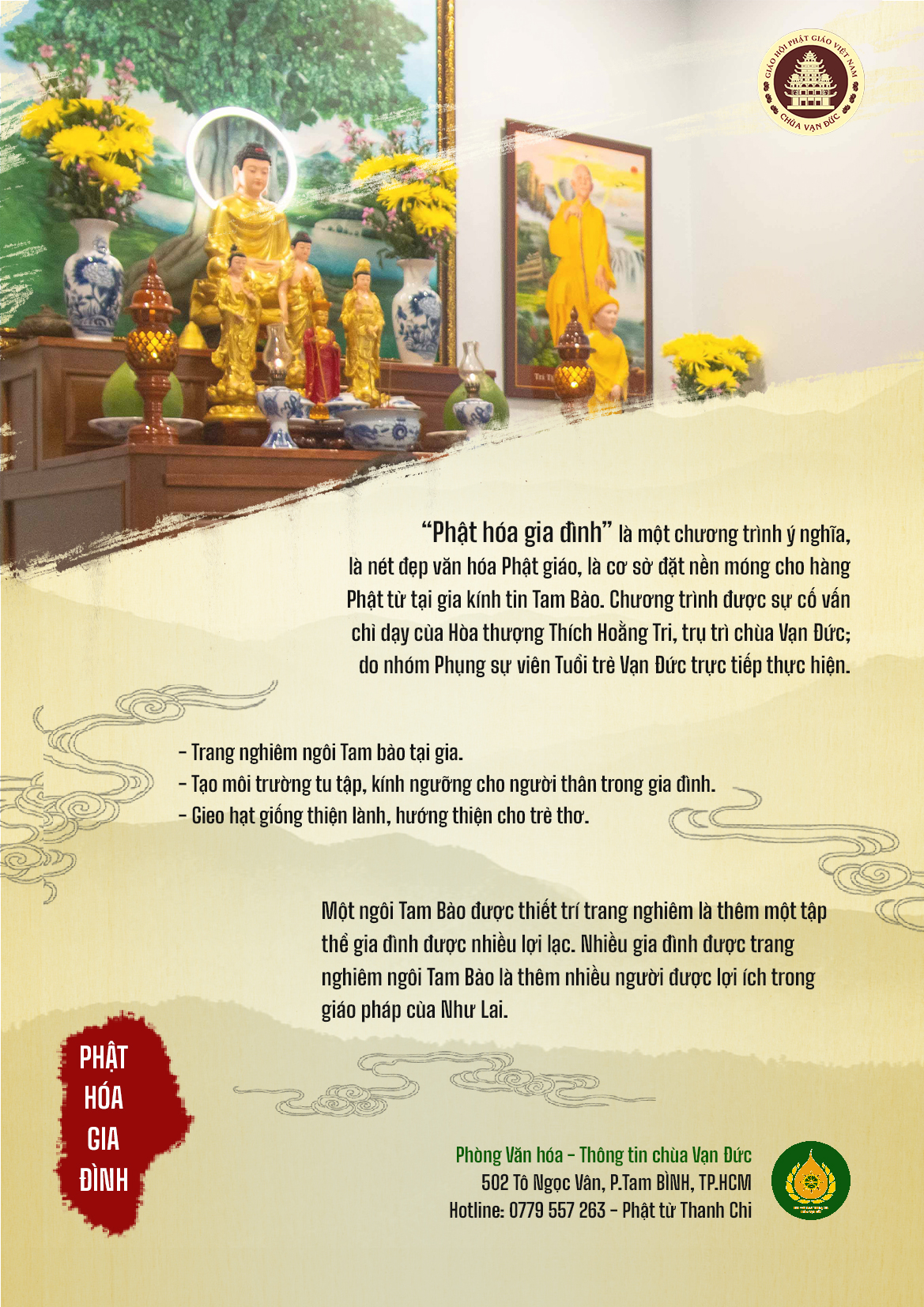 Chư tôn đức cử hành nghi thức niệm hương, đảnh lễ Tam bảo dưới dự dẫn lễ của Hòa thượng Thích Tắc Lãnh, Chứng minh Ban Trị sự GHPGVN TP.Thủ Đức, Thiền chủ hạ trường.