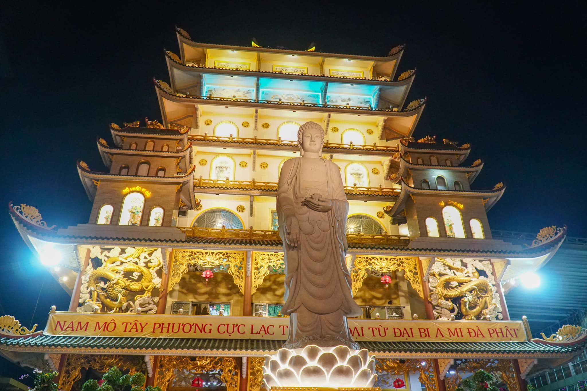 Tối 20-12 (17-11-Tân Sửu), tại chùa Vạn Đức (TP.Thủ Đức, TP.HCM) đã diễn ra lễ thắp hoa đăng kỷ niệm khánh vía Đức Phật A Mi Đà.